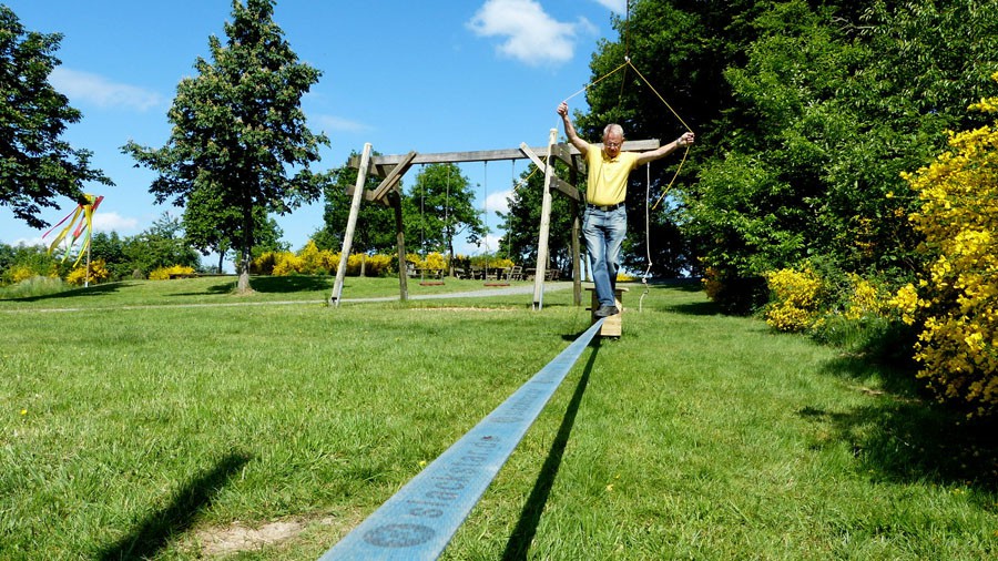 Markante Wegpunkte und Orte, die Siedlinghausen für Einheimische und Gäste erlebenswert machen. Und zu denen zählt natürlich auch unsere SGV-Hütte am Röbbeken: Der gepflegte Rasen kann es locker mit Wimbledon vor Turnierbeginn aufnehmen, also beste Voraussetzungen für Spiel und Sport jeder Art; (Mieter der Hütte finden eine Anlage, die viel mehr bietet als Grillen, Lagerfeuer und Hüttenzauber). Das neu installierte „Slackline“ ist um eine Halterung für Ungeübte bereichert und gibt Sicherheit für den Balanceakt auf dem schwingenden Seil. Hüttenwart Wilfried testete sein Werk im Selbstversuch – und erreichte wohlbehalten die andere Seite. Gott sei Dank, denn der neu befestigte Maibaum verleiht dem Hüttenplatz nicht nur am 1. Mai einen besonderen Rahmen: Im Frühsommer eiferten die bunten Farbbänder mit dem blühenden Ginster um die Wette, wer denn als erstes ins Blickfeld der Besucher gerät.