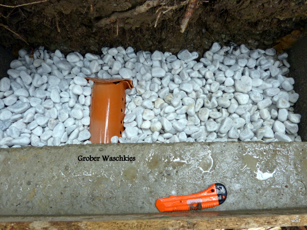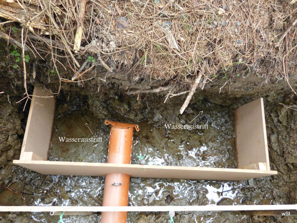 Wilfried hat sich 2012 der Sache angenommen und die Quelle neu eingefasst. Rund eine halbe Tonne Material musste im unwegsamen, steilen Gelände per Muskelkraft in den Wald gebracht werden und auch der Bau entpuppte sich nicht als ganz einfach: Schließlich musste die Quelle einen sicheren Zulauf mit Filtersystem bekommen und auch ein stets funktionierender Überlauf durfte nicht fehlen. Das Meisterwerk ist geglückt – rund 5000 Liter in 24 Stunden führte die Quelle am 08. August 2012, dem Tag ihrer Inbetriebnahme.