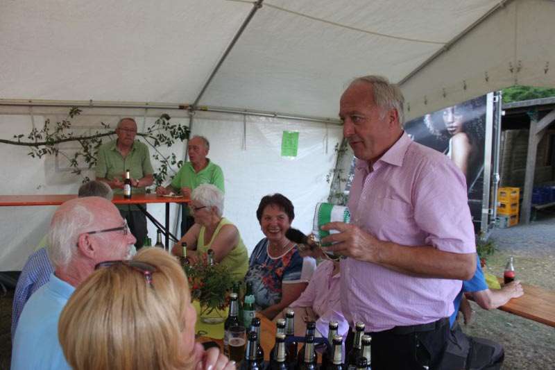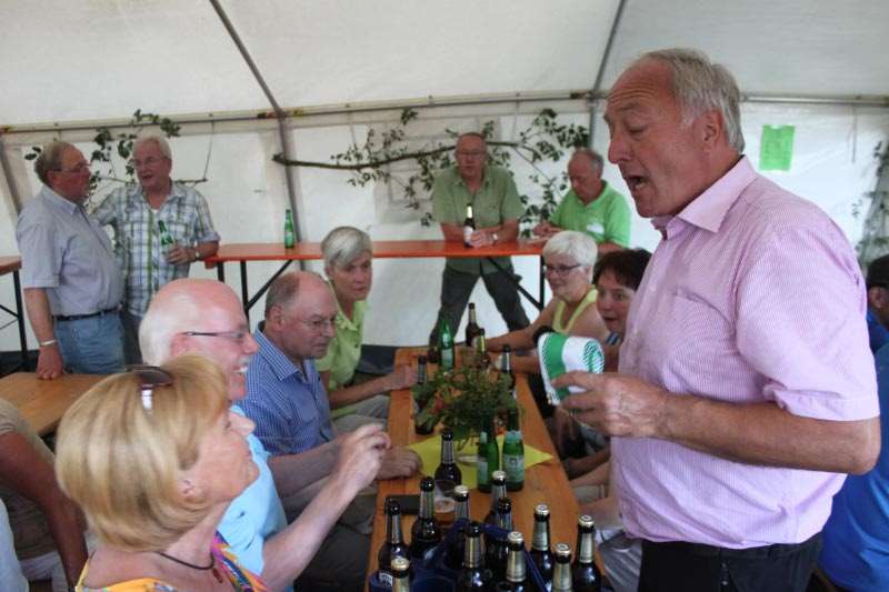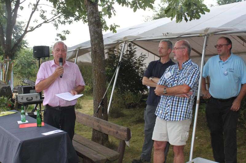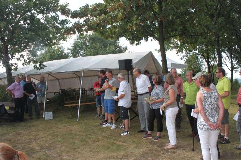 Am frühen Nachmittag begrüßte Norbert Schillings, Erster Vorsitzender der SGV-Abteilung Siedlinghausen, viele Mitglieder, Dorfbewohner, Gäste und zahlreiche SGV-Abteilungen aus der Nachbarschaft. Mit ihren Wimpeln kamen die SGVer aus Winterberg, Züschen, Hallenberg, Olsberg, Medebach, Assinghausen, Nuttlar, Grönebach, Elpe, Hildfeld und sogar aus Girkhausen aus dem Kreis Siegen-Wittgenstein. Einen kurzen Rückblick in die 125-Jahr-Geschichte zeigte dann in lockerer Form Norbert Schillings. „Wandern ist nicht nur gesund, es fördert auch das Miteinander, das sich Kennenlernen“, so Schillings.